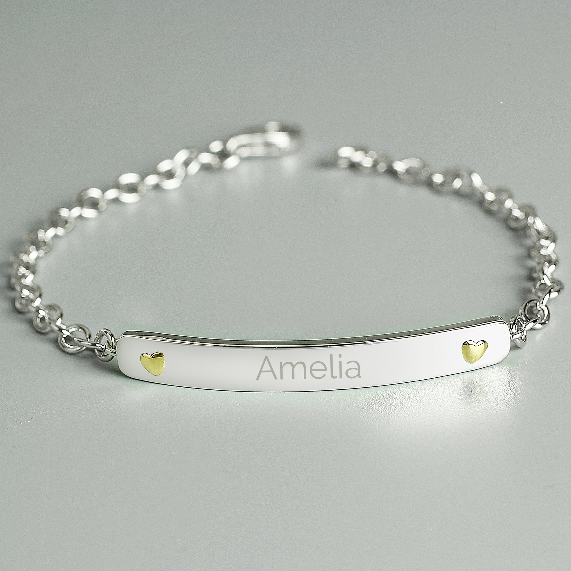 Personalised Sterling Silver and 9ct Gold Bar Bracelet