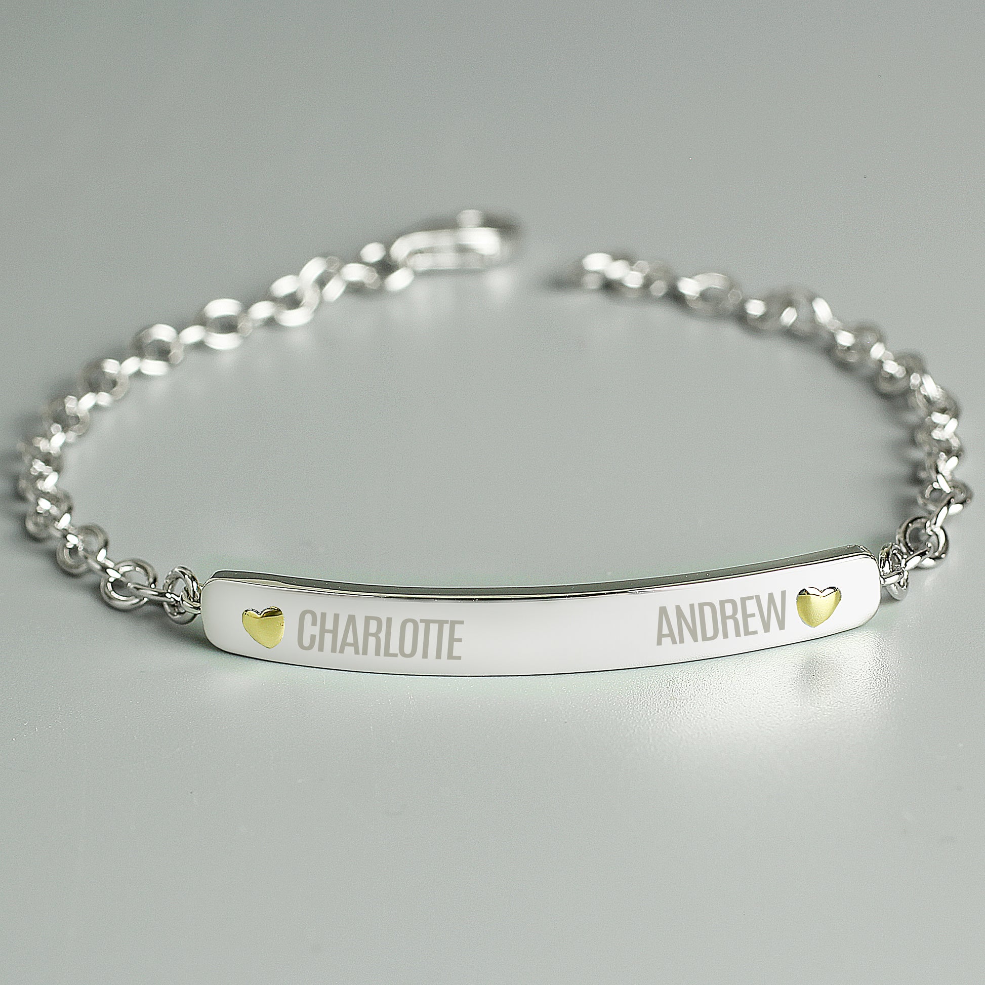 Personalised Two Names Sterling Silver and 9ct Gold Bar Bracelet
